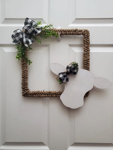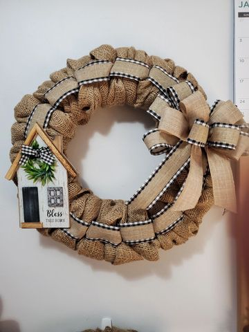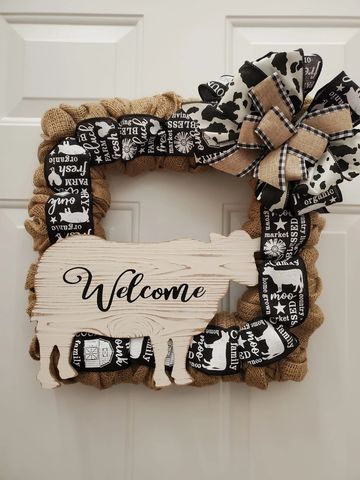 Burlap wreath square with Black and white farmhouse ribbon 16x16